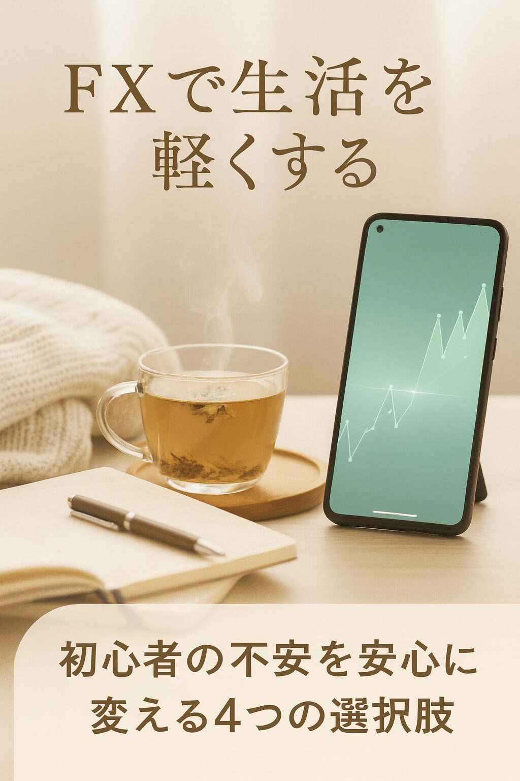 この記事では、「FXは難しそう」「損したらどうしよう」という不安を、ひとつずつ丁寧に解きほぐしながら、初心者が安心して検討できる4つの選択肢を、メリットだけでなく「リアルな注意点」も含めて、誠実に比較します。