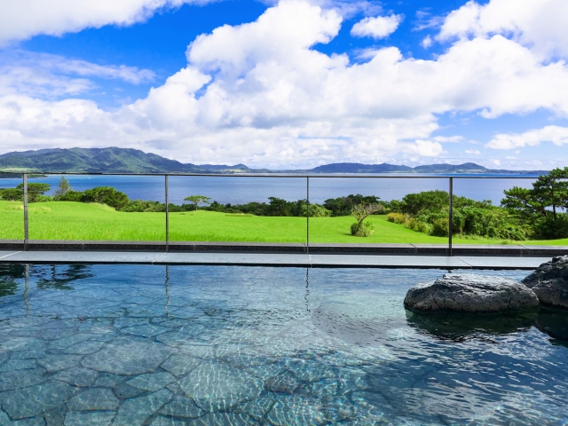 川奈ホテル(静岡県伊東市川奈)を拠点にすることで、移動距離を最小限に抑える。ゴルフ場と温泉は併設、神社は車で15分、ランチは神社から車で5分。無駄な移動がない。