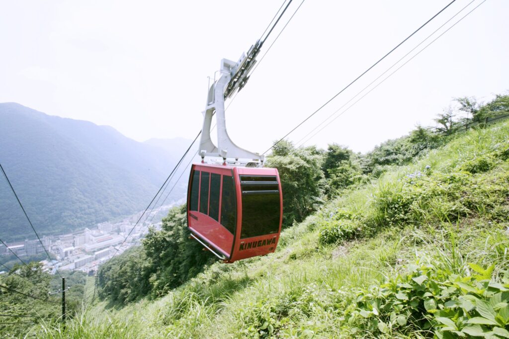 鬼怒川温泉ロープウェイは、所要時間約4分。