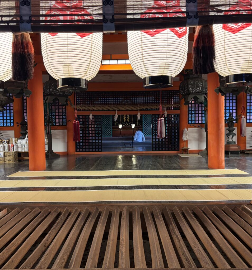 正式参拝を申し込み、本殿へ。対応してくださったのは神職の男性お二人で、祝詞が朱色の回廊に静かに響いた。「ここに来てよかった」と思えた。