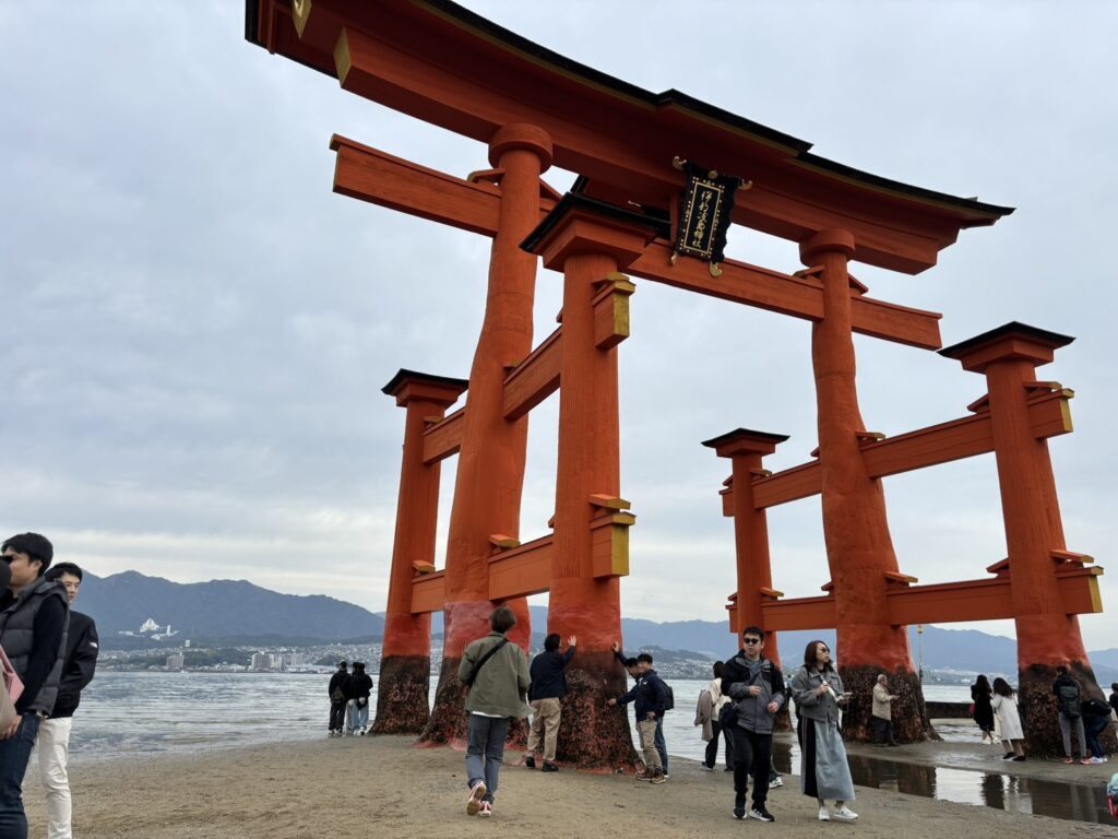 普段は海に浮かぶ厳島神社の大鳥居が、この日は歩いて行ける距離にあった。砂地に足を踏み入れると、少しぬかるんでいて、潮の香りが鼻をくすぐる。