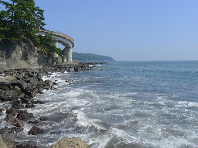 琴ヶ浜。海岸沿いにトイレと駐車場がある。実際の「うに清」はここにある。魚介・海鮮料理の店で、平成の天皇陛下が訪問されたという。