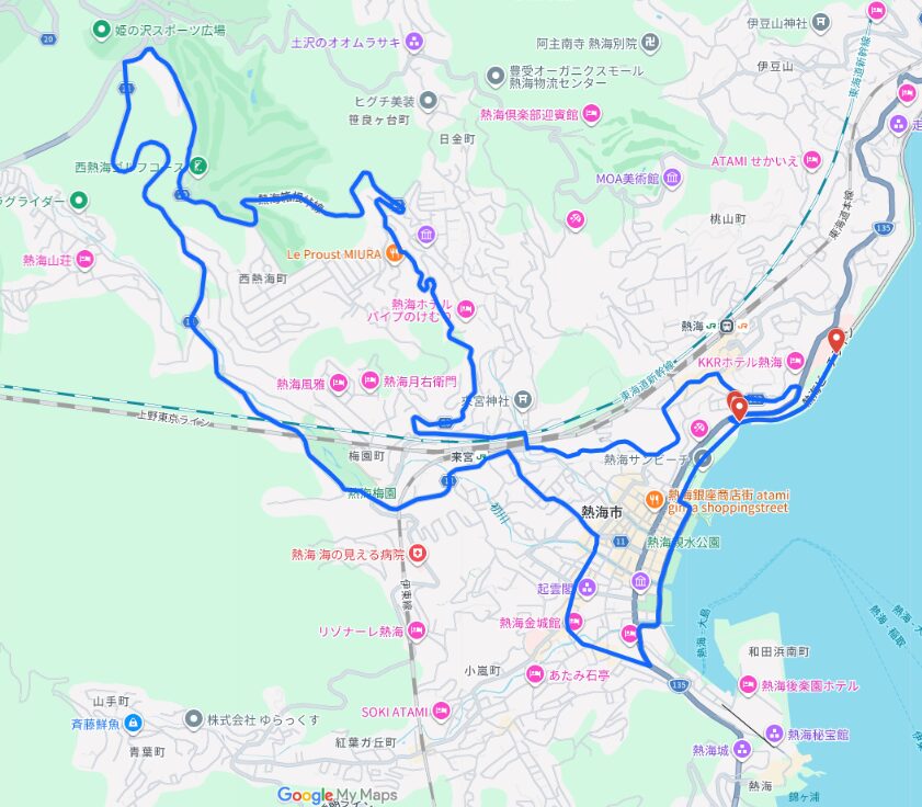 熱海ゴーストのコースマップ(データ出典:マツジン氏 / みんカラ)