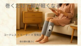 コードレスで使えるふくらはぎケア(ヒーター付き)を50代が徹底レビュー。温熱・加圧・自動オフなど機能を詳しく解説。脚の重さや冷え対策に役立つアイテムを紹介します。