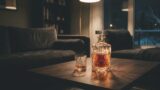 天然石のアイスキューブが入ったグラスが夜のテーブルに置かれている状態 お酒・ドリンク